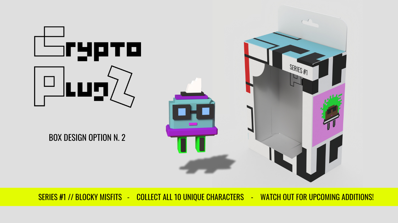 💎 The Blocky Misfits CryptoPlugz will arrive in either Box Design 1 or Box Design 2 - both exclusive to this drop, selected at random.